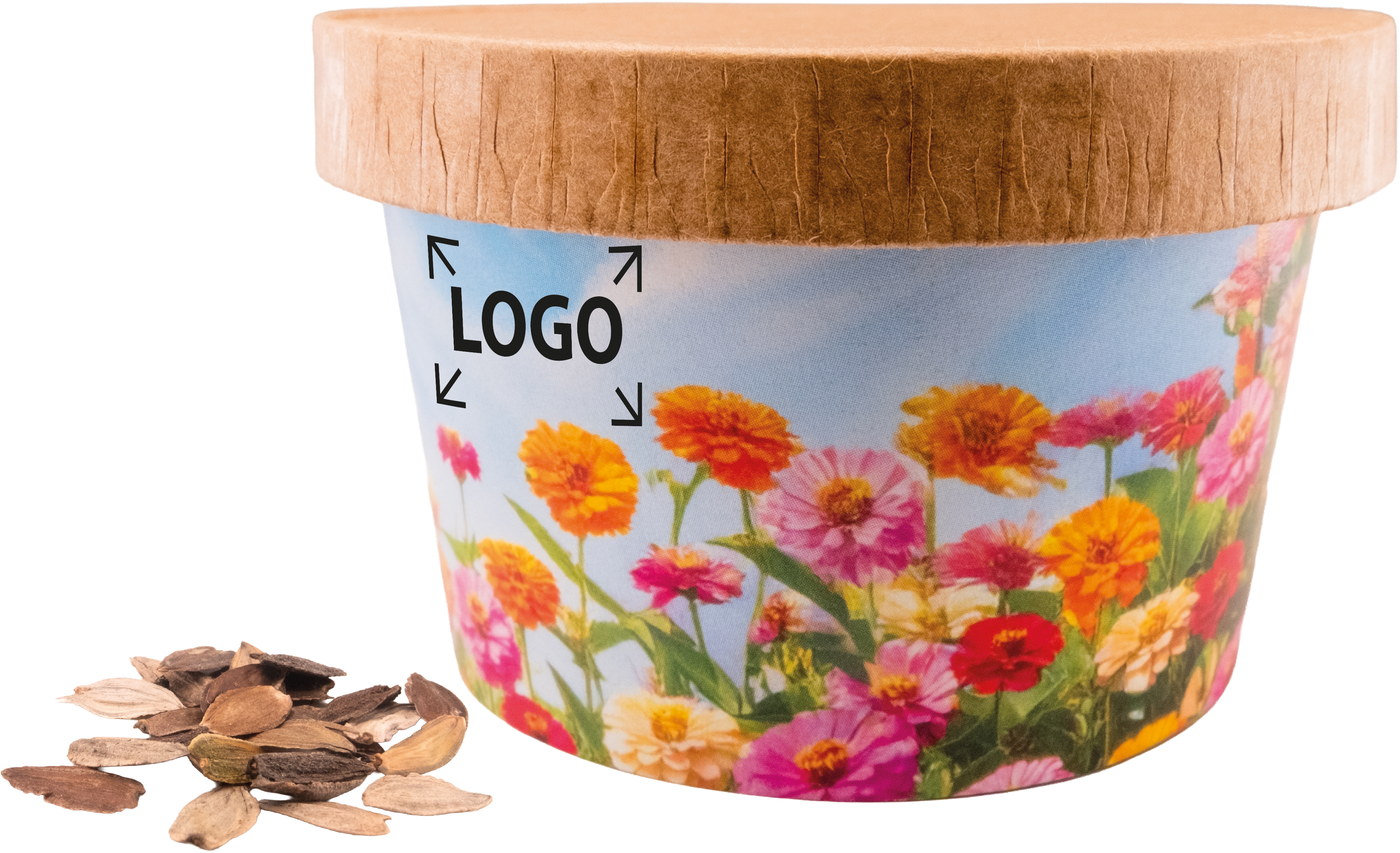 Beschreibung: Unser Blumen Cup ist ein farbenfrohes und charmantes Giveaway, das Ihre Kunden garantiert begeistert. Die leuchtenden Zinnienblüten setzen wunderschöne Akzente auf jedem Balkon und in jedem Blumenbeet. Setzen Sie Ihre Werbebotschaft wirkungsvoll in Szene – mit Ihrem Logo oder einem individuellen Design auf der Banderole, bereits ab 250 Stück