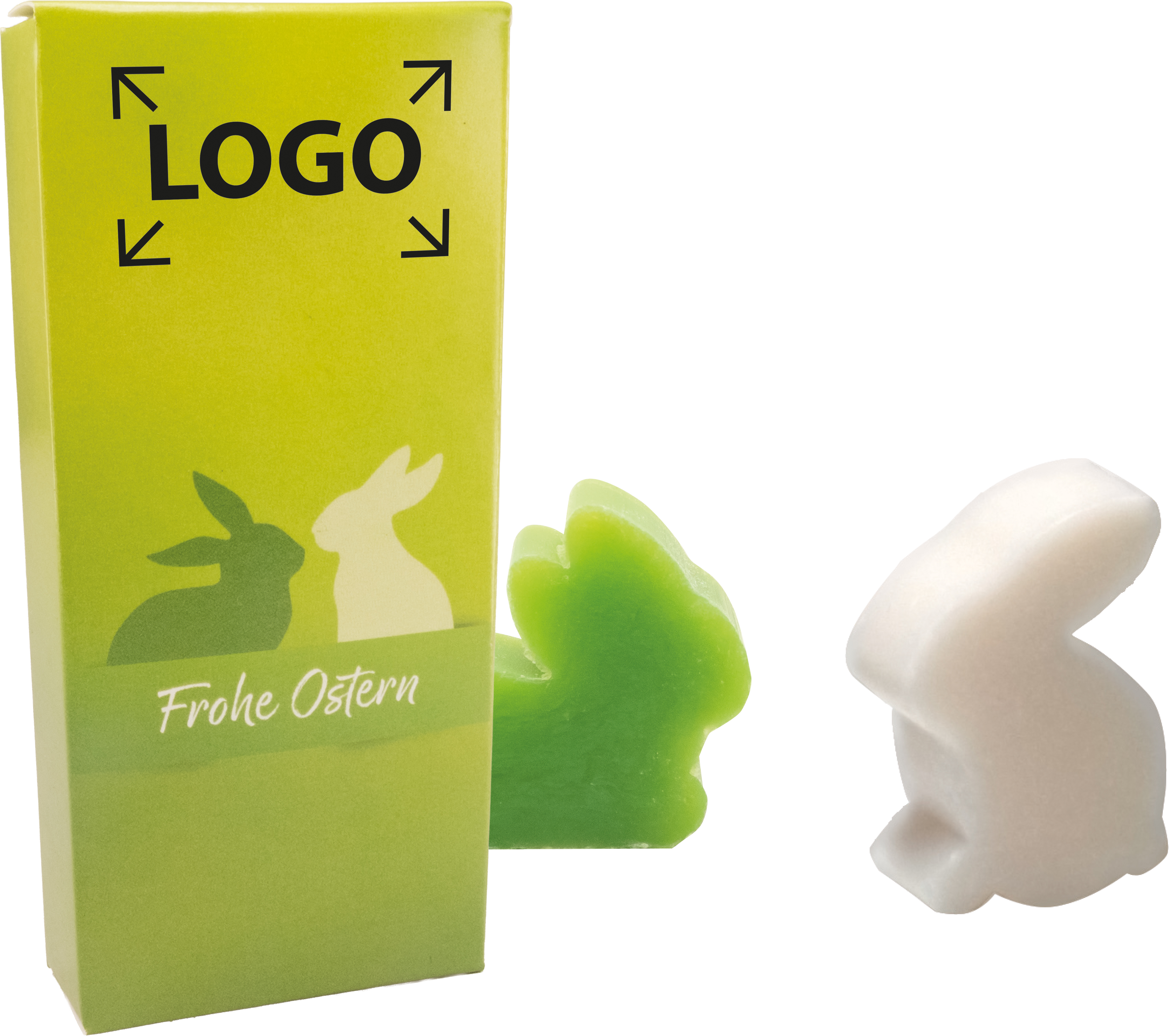 Beschreibung: Überraschen Sie Ihre Kunden zu Ostern mit diesen hochwertigen Schafmilchseifen in Hasenform. Die natürlichen Inhaltsstoffe – Schafwollfett und Schafmilch – sind eine Wohltat für empfindliche Haut. Auf dem Standardmotiv der Verpackung kann Ihr Werbedruck ab 250 Stück angebracht werden; auch eine individuelle Gestaltung ist ab dieser Menge möglich.